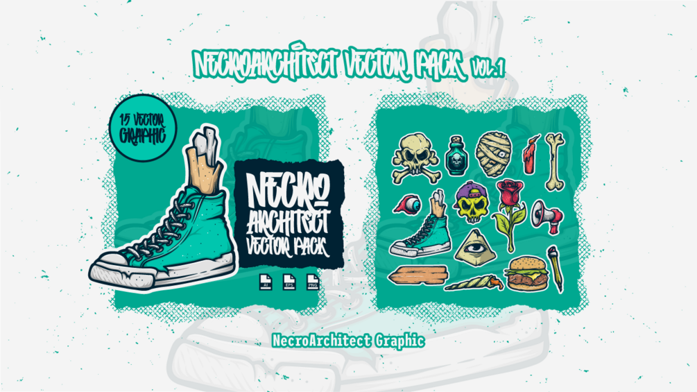 NecroArchitect Vector Pack vol.1 contains 15 vector illustrations, each in AI, EPS, and PNG format. Layers are highly organized and editable.